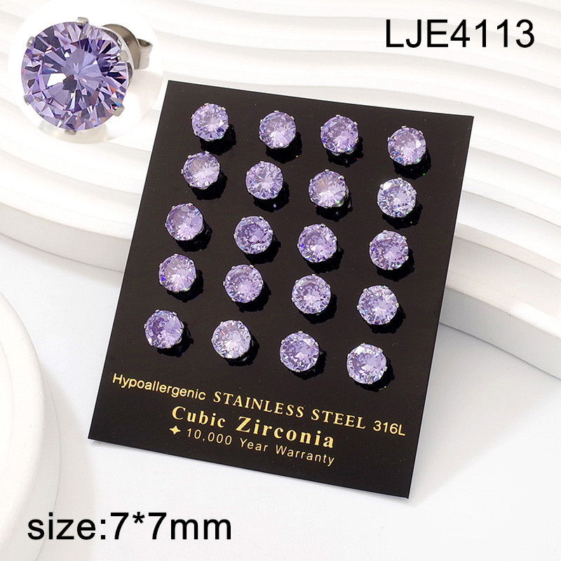 Level A Stainless Steel Jewelry Steel color Turn blue Round Zircon Earrings