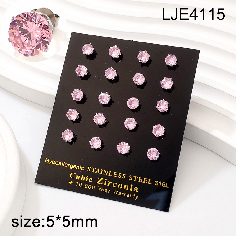 Level A Stainless Steel Jewelry Steel color Pink Round Zircon Earrings