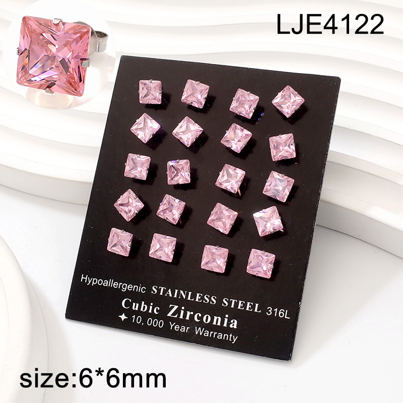 Level A Stainless Steel Jewelry Steel color Pink Square Zircon Earrings