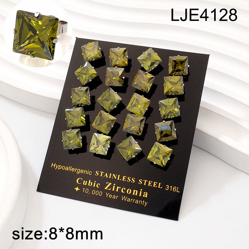 Level A Stainless Steel Jewelry Steel color Olive green Square Zircon Earrings