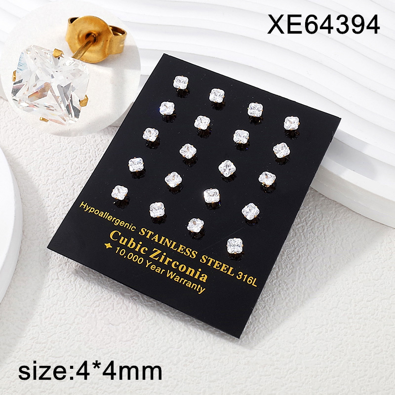 Home > Stainless Steel Jewelry White Square zirconium Golden Earrings