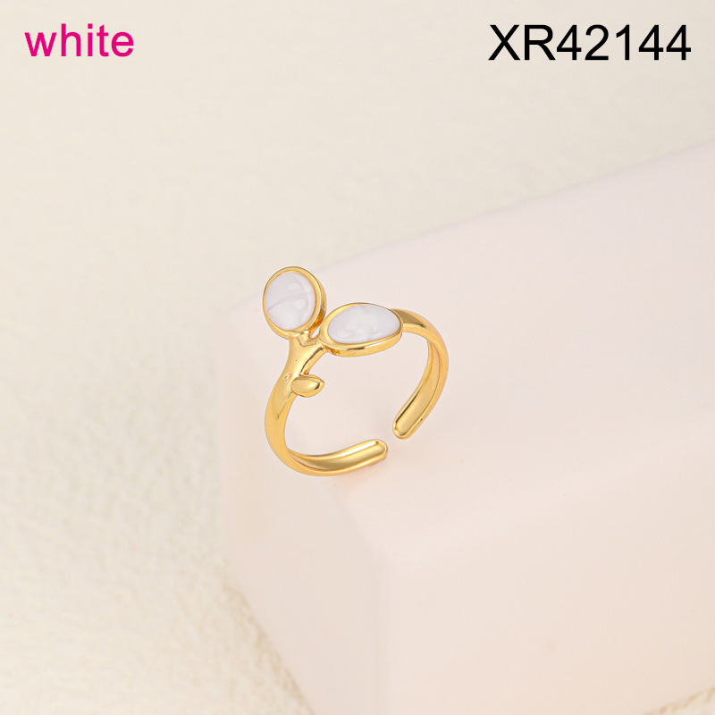 Level B Stainless Steel New Trendy Women Jewelry Drip Oil/Enamel White Golden Open Rings;Ring size can be adjusted freely