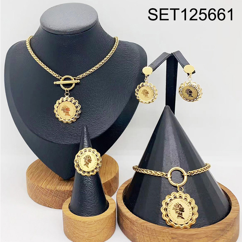 Level B Stainless Steel New Trendy Women Jewelry Coin Queen Golden 4pcs SET
