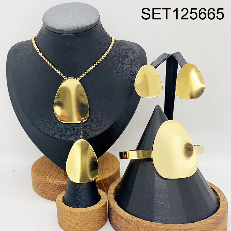 Level B Stainless Steel New Trendy Women Jewelry Geometry Golden 4pcs SET