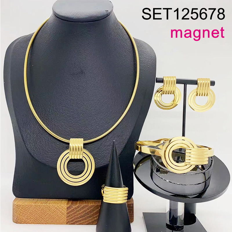 Level B Stainless Steel New Trendy Women Jewelry Round Golden Magnet buckle 4pcs SET