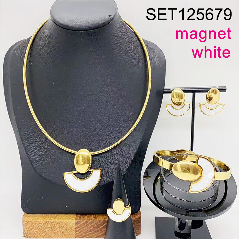 Level B Stainless Steel New Trendy Women Jewelry White Geometry Golden Magnet buckle 4pcs SET