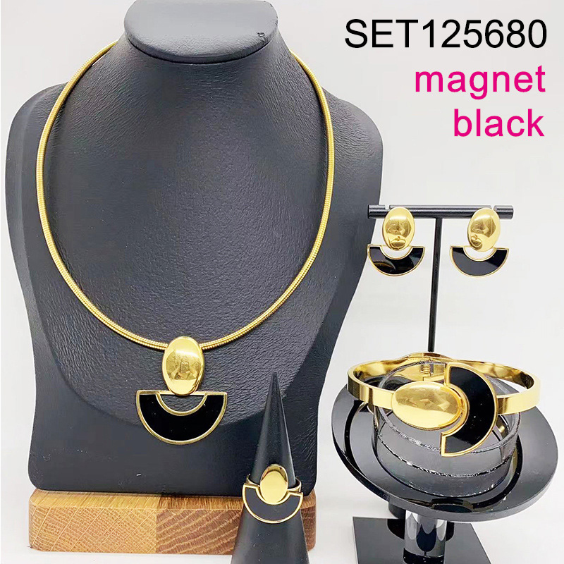 Level B Stainless Steel New Trendy Women Jewelry Black Geometry Golden Magnet buckle 4pcs SET