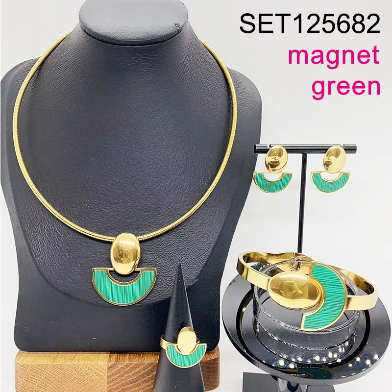 Level B Stainless Steel New Trendy Women Jewelry Green Geometry Golden Magnet buckle 4pcs SET