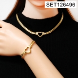 Level B Stainless Steel New Trendy Women Jewelry Golden SET;Bracelet+Necklace