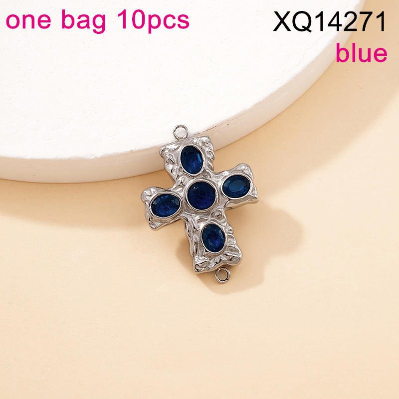 Level B Stainless Steel New Trendy Jewelry Cross Blue Crystal zirconium Steel color DIY Charms