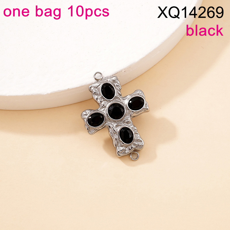 Level B Stainless Steel New Trendy Jewelry Cross Black Crystal zirconium Steel color DIY Charms