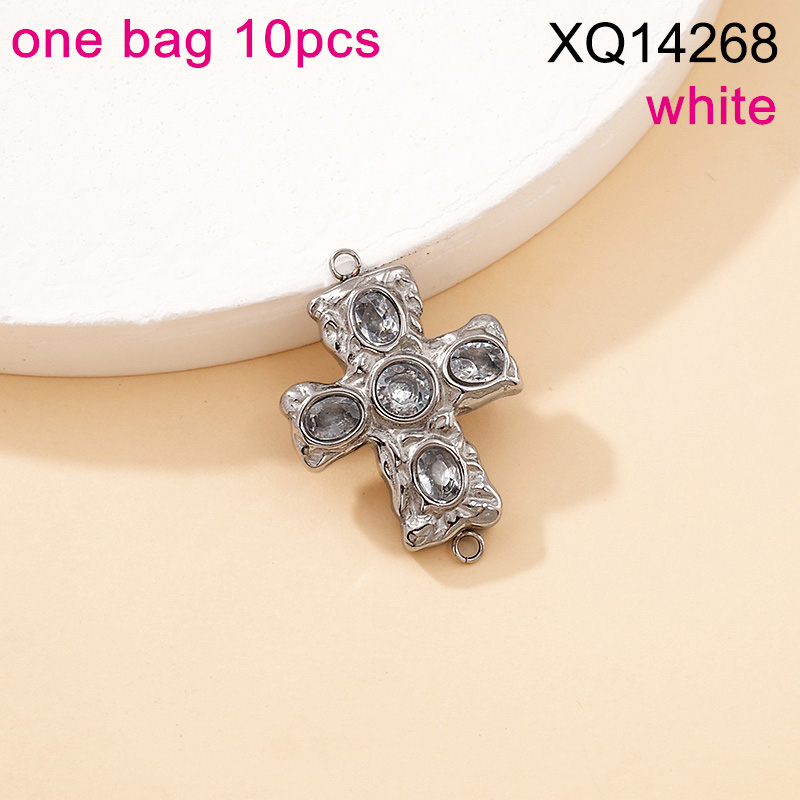 Level B Stainless Steel New Trendy Jewelry Cross White Crystal zirconium Steel color DIY Charms