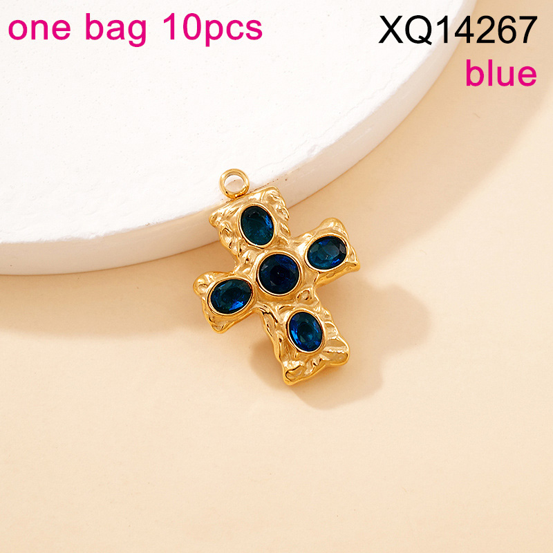 Level B Stainless Steel New Trendy Jewelry Cross Blue Crystal zirconium Golden DIY Charms