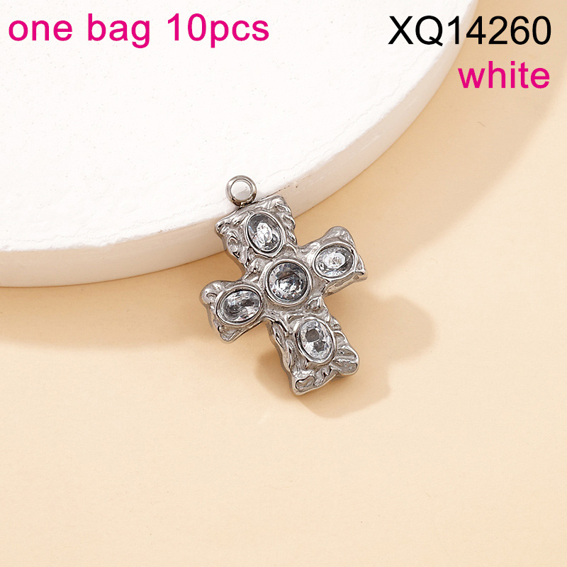 Level B Stainless Steel New Trendy Jewelry Cross White Crystal zirconium Steel color DIY Charms