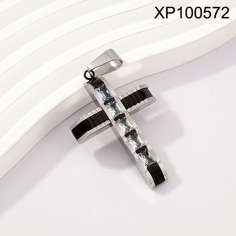 Level B Stainless Steel New Trendy Man Jewelry Two Tone White Crystal zirconium Cross Pendant