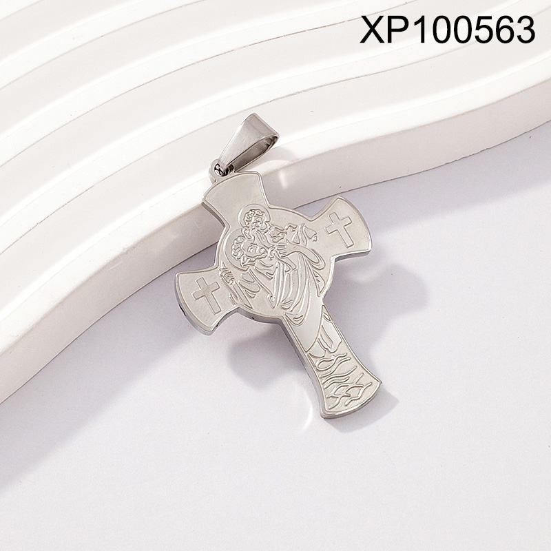 Level B Stainless Steel New Trendy Man Jewelry Steel color Cross Pendant