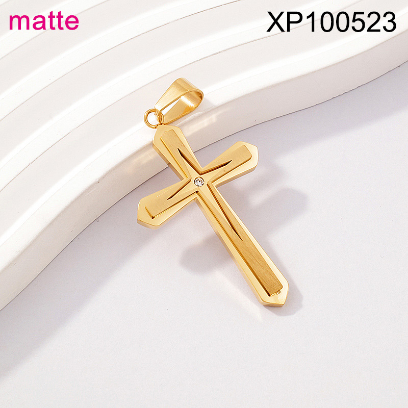 Level B Stainless Steel New Trendy Man Jewelry Golden Cross Matte Pendant