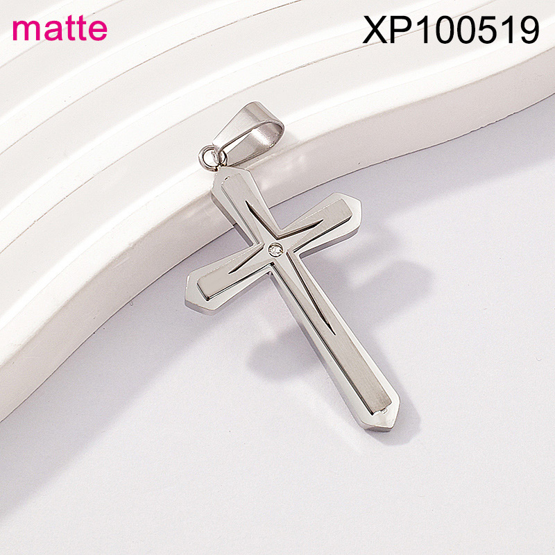 Level B Stainless Steel New Trendy Man Jewelry Steel color Cross Matte Pendant