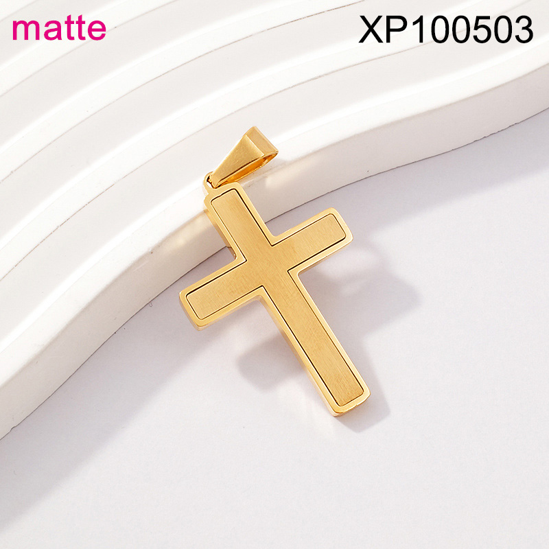 Level B Stainless Steel New Trendy Man Jewelry Golden Cross Matte Pendant