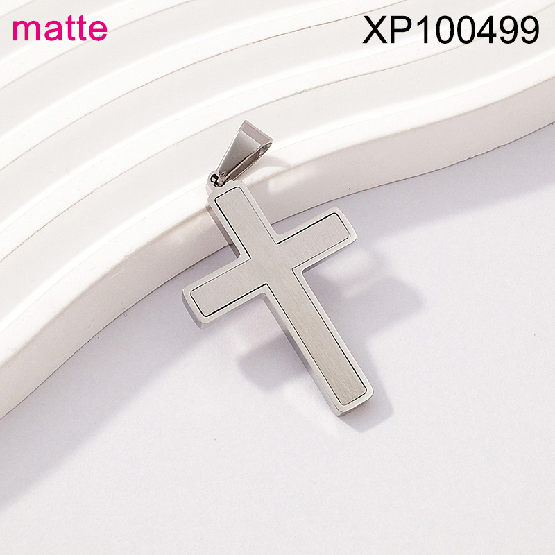 Level B Stainless Steel New Trendy Man Jewelry Steel color Cross Matte Pendant