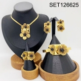 Level B Stainless Steel New Trendy Women Jewelry Flower Golden 4pcs SET