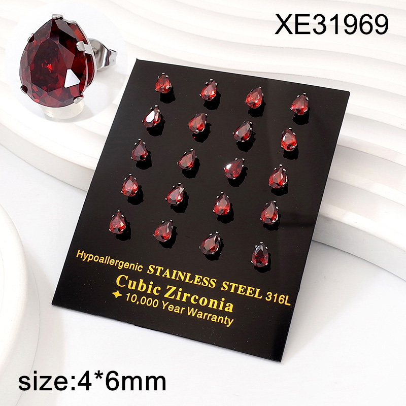 Level A Stainless Steel Jewelry Hot Sale Steel color Red Water Drip zirconium Earrings