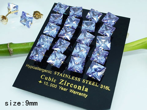 Stainless Steel Jewelry Golden Turn blue Square Zircon Earrings