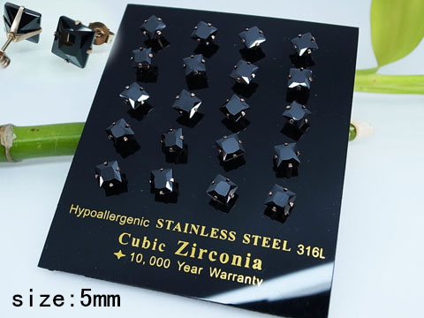 Stainless Steel Jewelry Rose gold Black Square Zircon Earrings