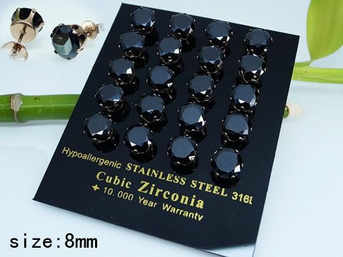 Stainless Steel Jewelry Rose gold Black Round Zircon Earrings