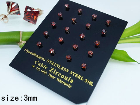 Stainless Steel Jewelry Rose gold Red Square Zircon Earrings