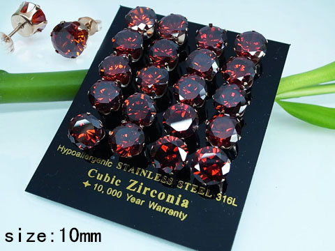 Stainless Steel Jewelry Rose gold Red Round Zircon Earrings