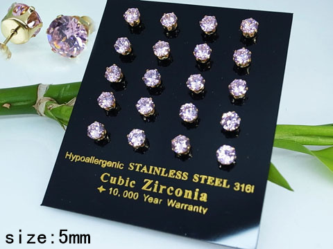 Stainless Steel Jewelry Golden Pink Round Zircon Earrings
