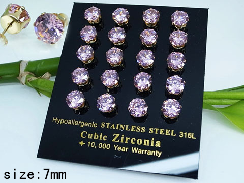 Stainless Steel Jewelry Golden Pink Round Zircon Earrings