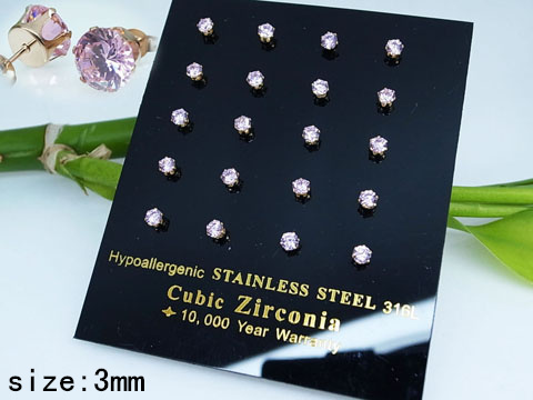 Stainless Steel Jewelry Rose gold Pink Round Zircon Earrings