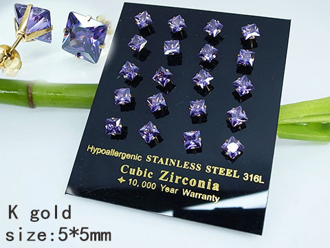 Stainless Steel Jewelry Golden Purple Square Zircon Earrings