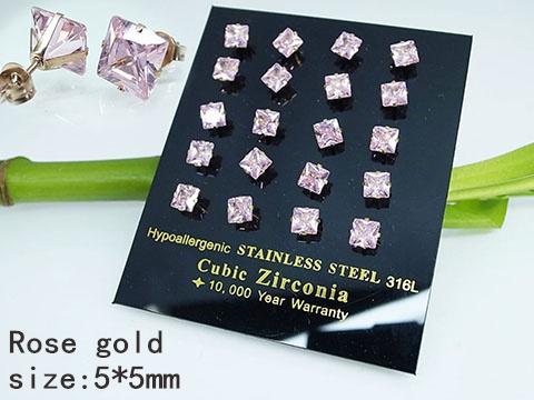 Stainless Steel Jewelry Rose gold Pink Square Zircon Earrings