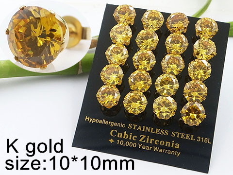 Stainless Steel Jewelry Golden Yellow Round Zircon Earrings