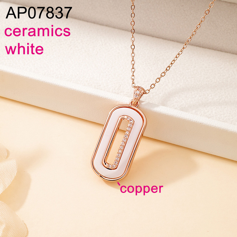 Level B Fashion Jewelry New Trendy Women Jewelry Rose gold Oval White Ceramics Pendant;Material:copper (cobre)