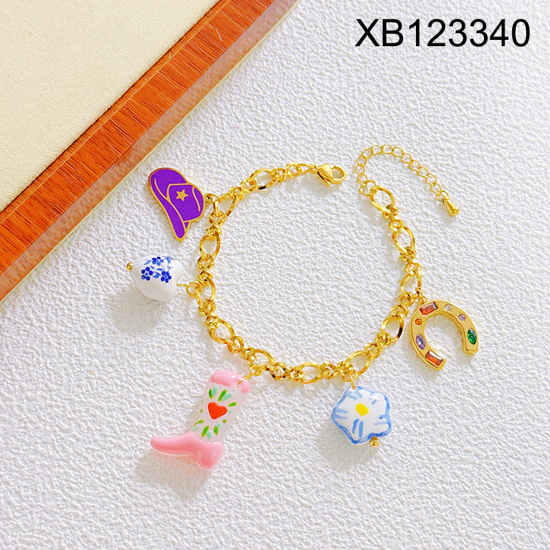 Level B Stainless Steel New Trendy Women Jewelry Hat Shoe Golden Bracelet