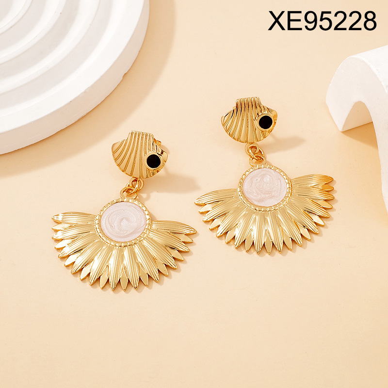 Level B Stainless Steel New Trendy Women Jewelry Animal Shell Fan-shaped Golden Earrings
