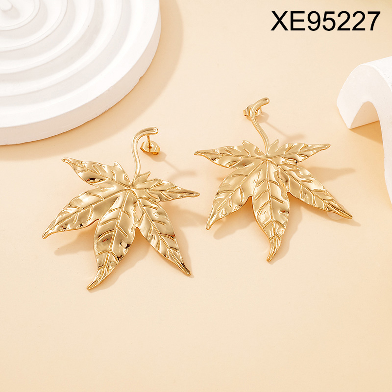 Level B Stainless Steel New Trendy Women Jewelry Leaf Golden Earrings