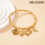 Level B Stainless Steel New Trendy Women Jewelry Summer beach Tree Mermaid Animal Shell Golden Open Bangle;Bangle size can be adjusted freely