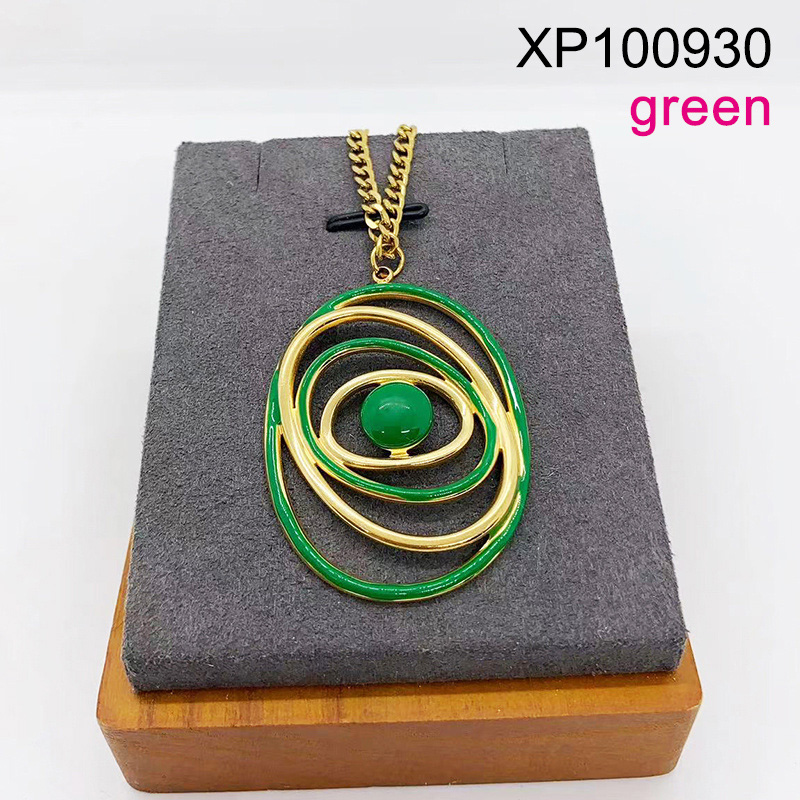 Level B Stainless Steel New Trendy Women Jewelry Drip Oil/Enamel Green Oval Golden Pendant