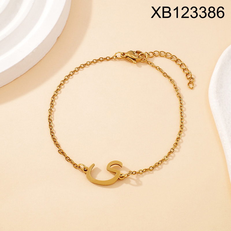 Level C Stainless Steel New Trendy Women Jewelry Arabic Alphabet Golden Bracelet