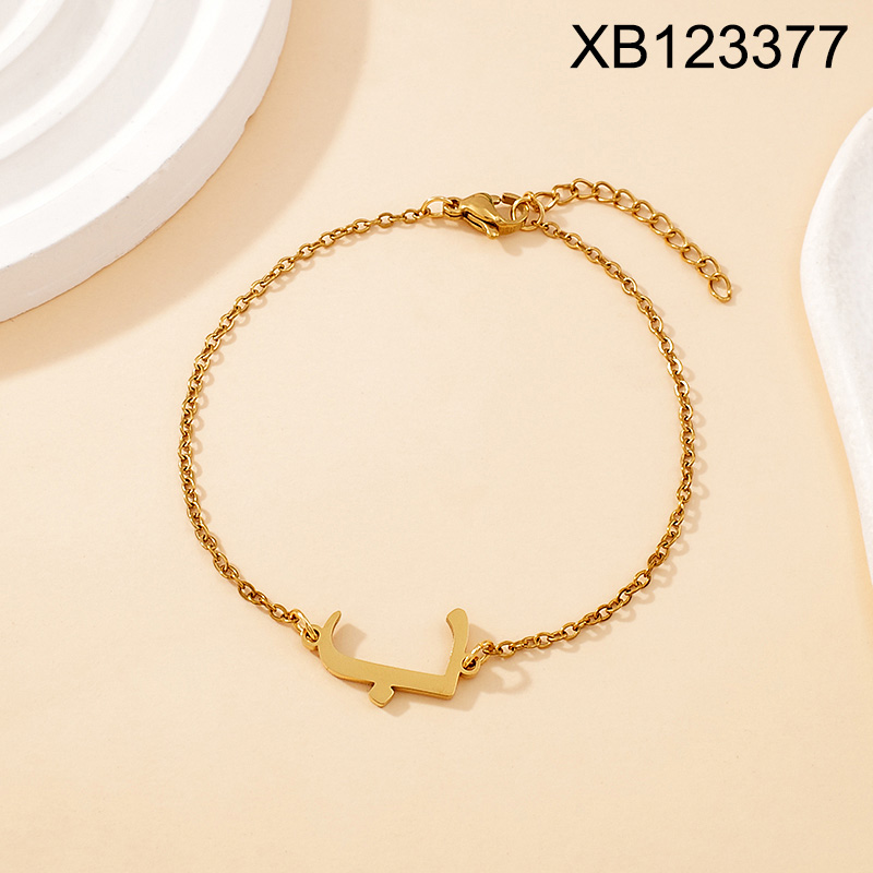 Level C Stainless Steel New Trendy Women Jewelry Arabic Alphabet Golden Bracelet