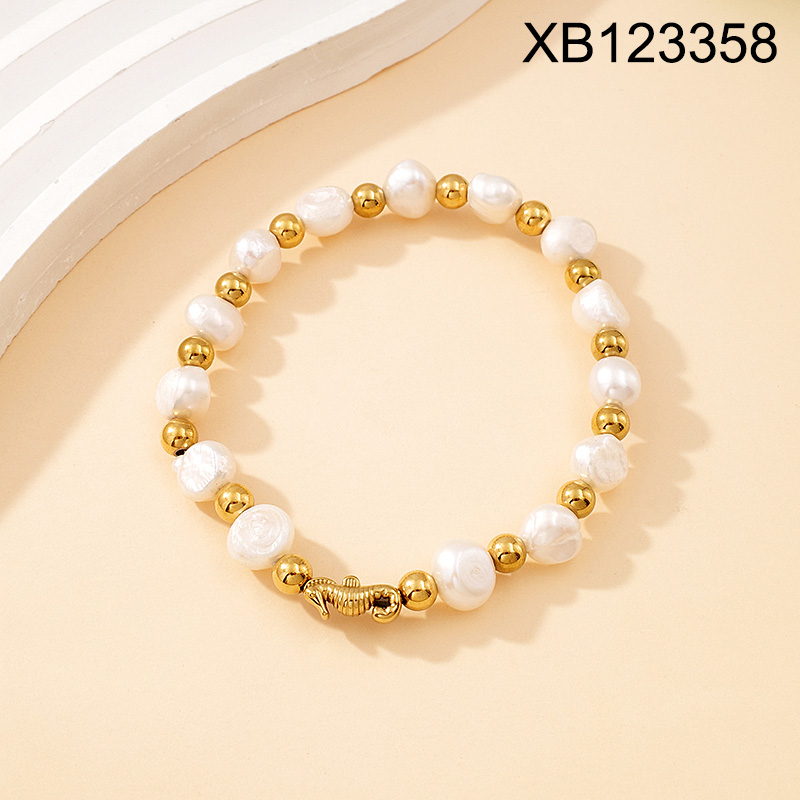 Level B Stainless Steel New Trendy Women Jewelry Pearl Style Summer beach Animal Seahorse Golden Elastic Bracelet