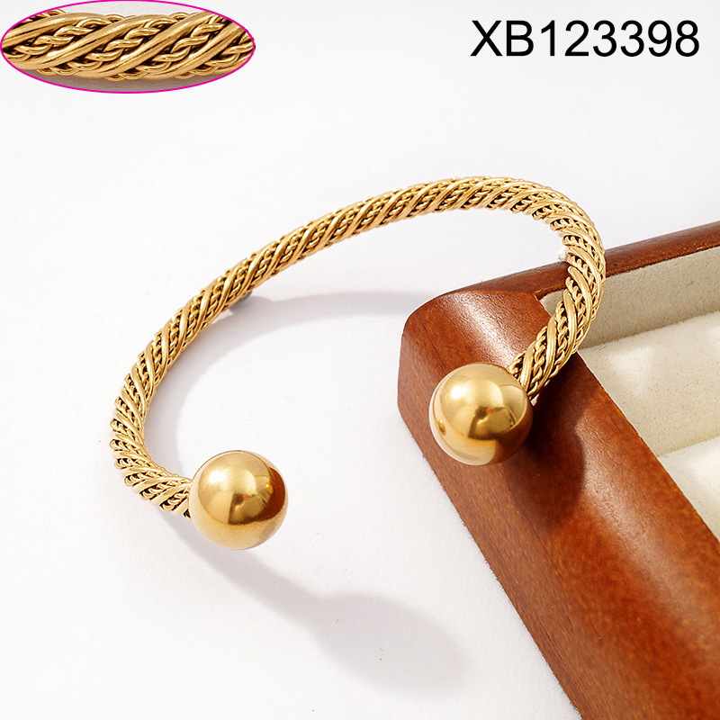 Level B Stainless Steel New Trendy Women Jewelry Golden Wire Open Bangle;Bangle size can be adjusted freely