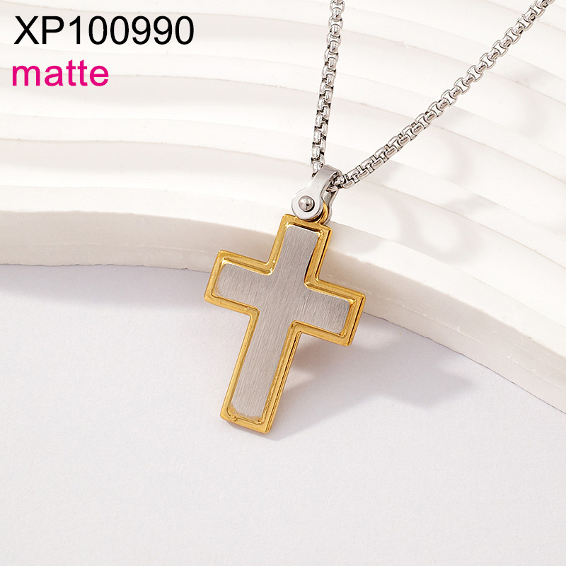 Home > Level B Stainless Steel New Trendy Man Jewelry Cross Two Tone Matte Pendant