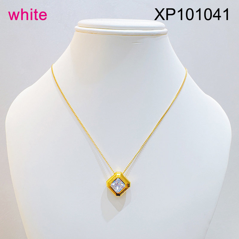 Level B Stainless Steel New Trendy Women Jewelry Square White Glass zirconium Golden Pendant