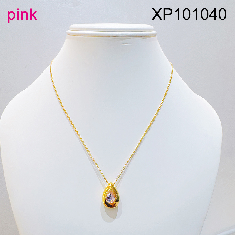 Level B Stainless Steel New Trendy Women Jewelry Water Drip Pink Glass zirconium Golden Pendant